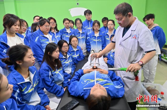 今日正在少秋人文教院,教死正在真操介护技能。中新社记者 弛瑶 摄